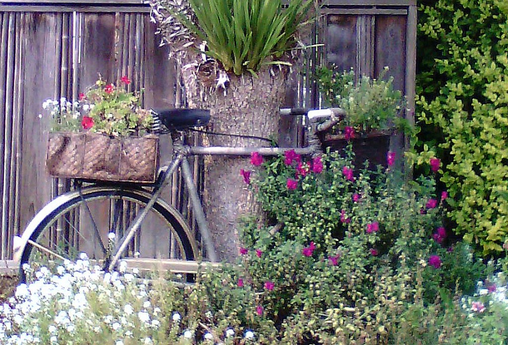 I enjoy the sight of pink roses that add a splash of color poking through a worn fence . . . . or a graceful ornamental crane to brighten a corner of their garden.