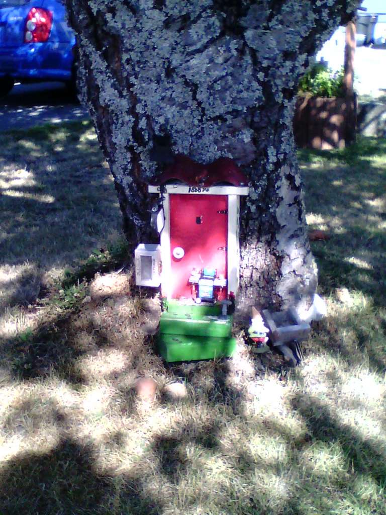 A ritzy Elf’s home complete with teeny barbecue, mailbox and teeny lawn chair