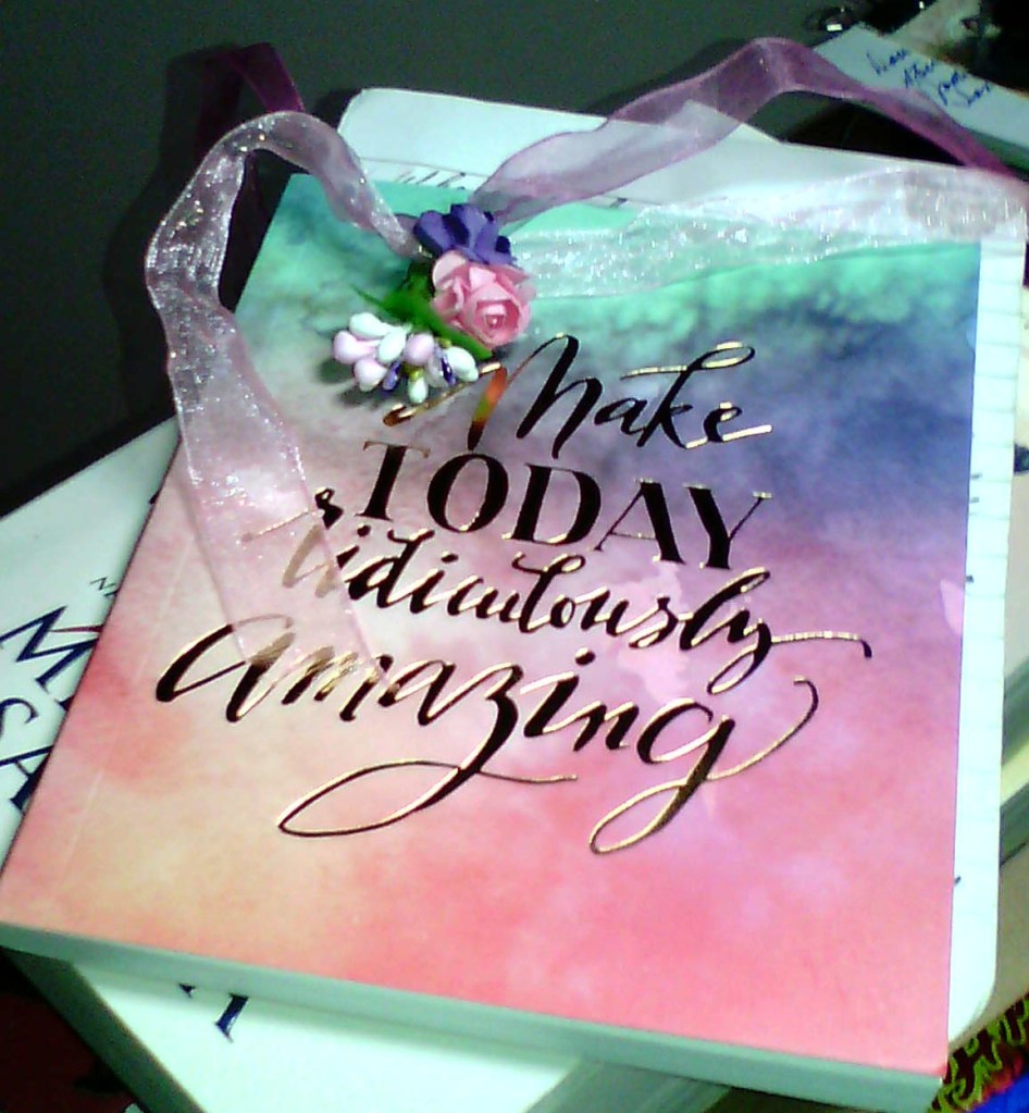Some things happen by accident like this awesome photo I took of the cover of my notebook and a piece of fancy ribbon with a sprig of flowers that had adorn my favourite soap. That’s what I call my eureka moment; others might call it a moment of inspiration.